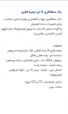 مشخصات فنی جک صافکاری ۴ تن جعبه فلزی نووا :